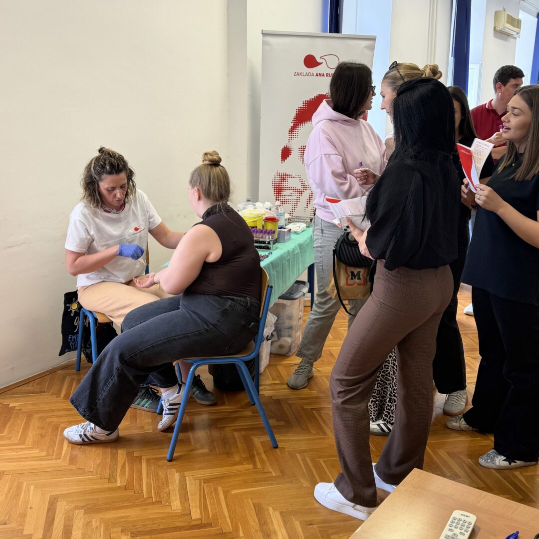 U utorak, 21. travnja 2026. učenici završnih razreda Medicinske škole u Rijeci upisali su se u Hrvatski registar dobrovoljnih darivatelja krvotvornih matičnih stanica. Akcija je provedena u suradnji Medicinske škole u Rijeci sa Zakladom Ana Rukavina. Istu je organizirala i njome koordinirala voditeljica nastave Nensi Araminčić, mag. med. lab. diag.