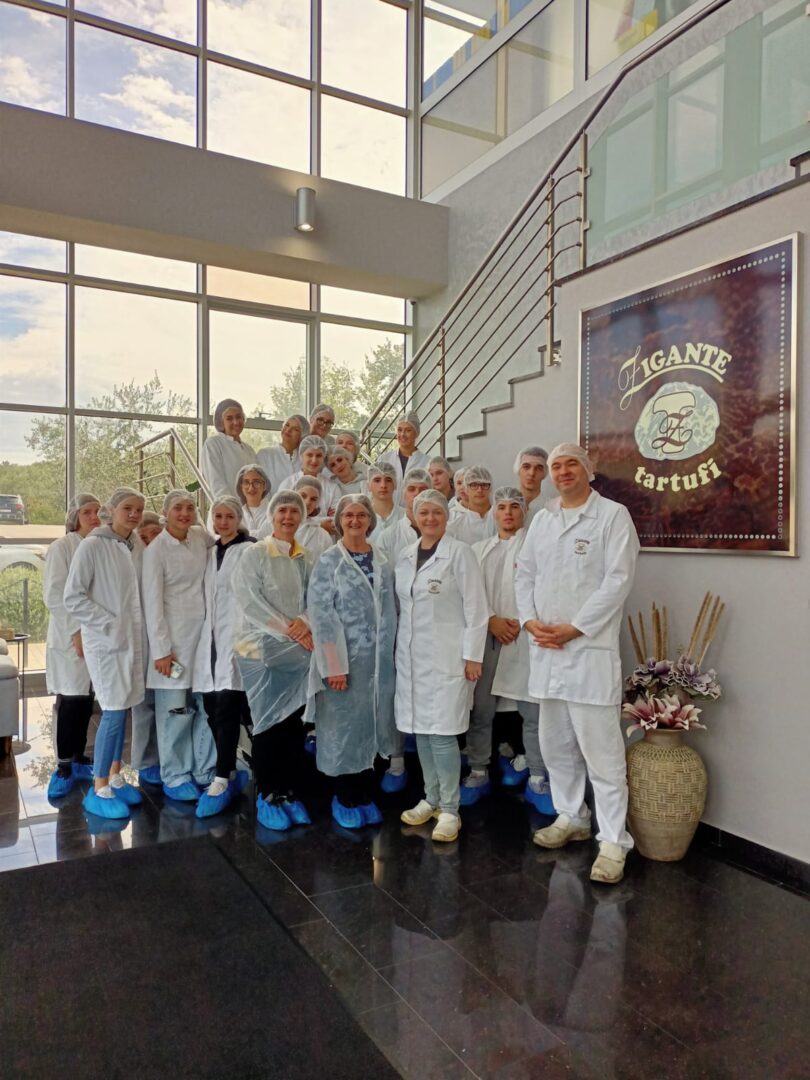 U povratku smo posjetili i pogon za preradu tartufa Zigante tartufi d.o.oBuje, gdje su nas dočekali rukovoditeljica proizvodnje Luana Kušće Vodopija, dipl. ing. i njen mlađi kolega tehnolog. Oni su nas sproveli kroz pogon objašnjavajući svaku fazu procesa prerade i na kraju pakiranje proizvoda od tartufa.
